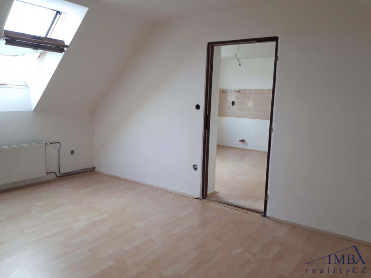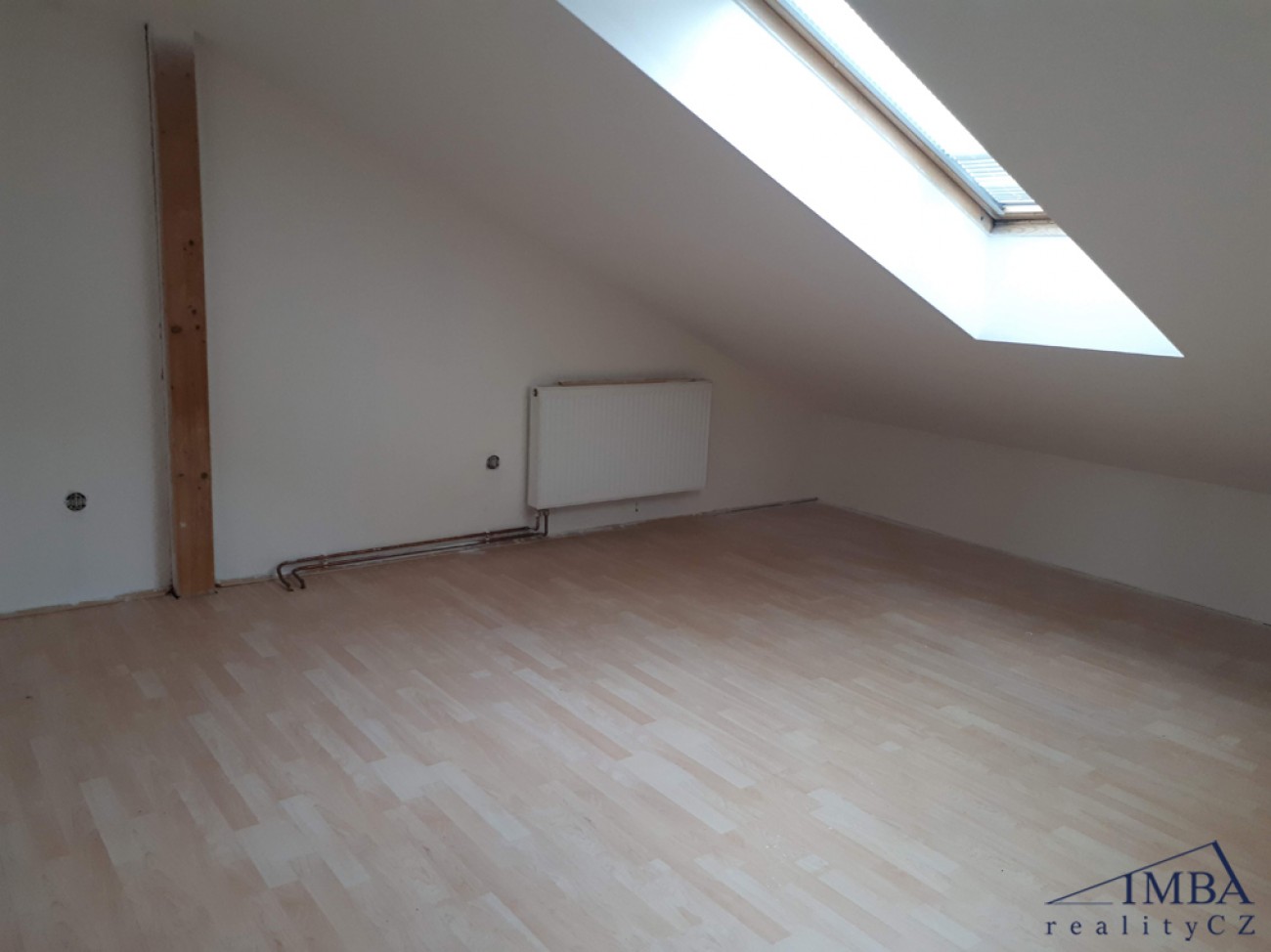 V podkrovní části domu jsou tři samostatné pokoje, kuchyň s přípravou pro kuchyňskou linku a koupelna s toaletou.